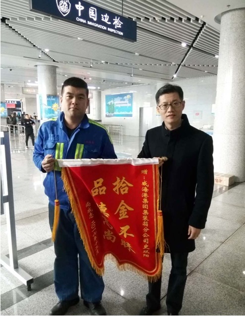 拾金不昧品德高 12月4日下午16:30分左右,威海港集装箱分公司行李装卸班组员工史双阳在进行行李装箱作业时,发现地上有一个遗失的钱包,里面装有韩币和部分人民币,价值近2万元。因此时旅客都已上船,钱包内也没有失主的任何信息,史双阳毫不犹豫,第一时间把钱包转交给了威东航运船公司工作人员手中,让他们代为联系失主。 为表达感谢,威东航运公司代表失主为公司和史双阳本人送来了感谢信和锦旗,表达对史双阳拾金不昧精神的赞扬,同时也对集装箱分公司近年来在服务客户、提高作业效率等方面给予船公司的大力支持和配合表示感谢。 集装箱分公司在多年发展中,一直坚持客户至上的服务理念,在与船公司保持密切合作的同时,不断提高服务理念和服务标准,综合服务能力大幅提升。尤其在开展班组建设活动以来,在“徐明选操作队”明星班组的带动下,公司员工精神面貌焕然一新,给公司发展增添了正能量,为公司树立形象,赢得了口碑。 史双阳拾金不昧的行为,不仅体现了集装箱分公司员工高尚的道德情操,更展示了威海港员工的精神风貌。从王乐宾的见义勇为到史双阳的拾金不昧,体现的是威海港员工在当代社会弥足珍贵的行为准则。他们的精神,值得全港员工学习;他们的行为,值得大力提倡和赞扬。