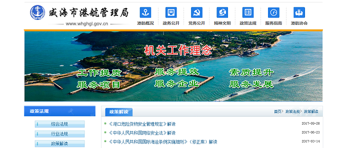 2017年,威海市港航管理局认真贯彻落实《条例》,建立了工作网络,健全了运行机制,保证了政府信息公开效果。全年,通过“中国·威海”政府网站信息公开平台、市港航管理局门户网站、微博微信及新闻媒体、公告栏、电子显示屏等多种形式,广泛发布各类法律法规、政策解读、办事指南等服务信息,按时发布海浪、大风等警示信息,及时、全面、有效地主动公开政府信息,积极受理和回复向我单位提出的政府信息公开申请,为公众提供了比较好的政府信息公开服务。